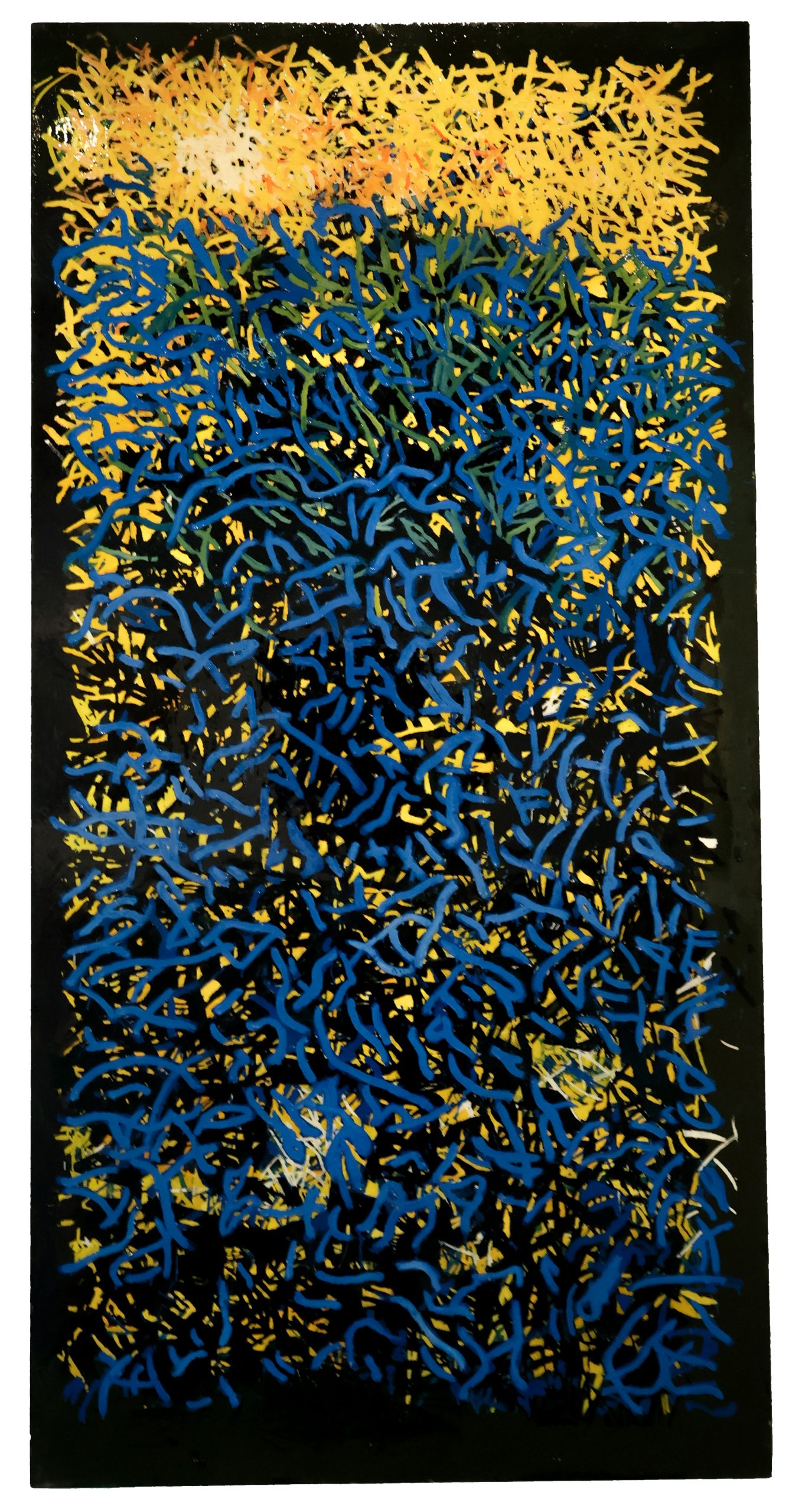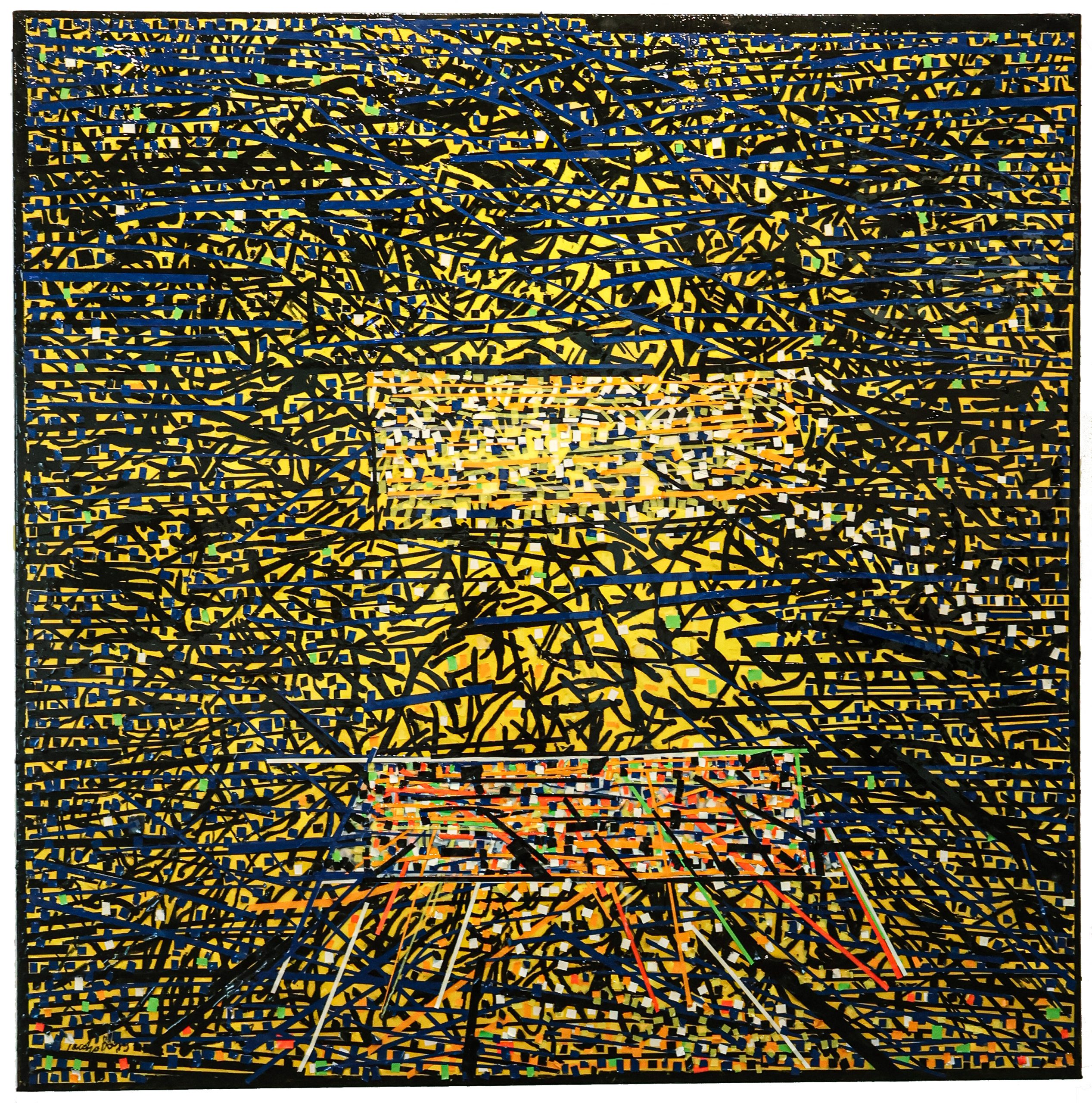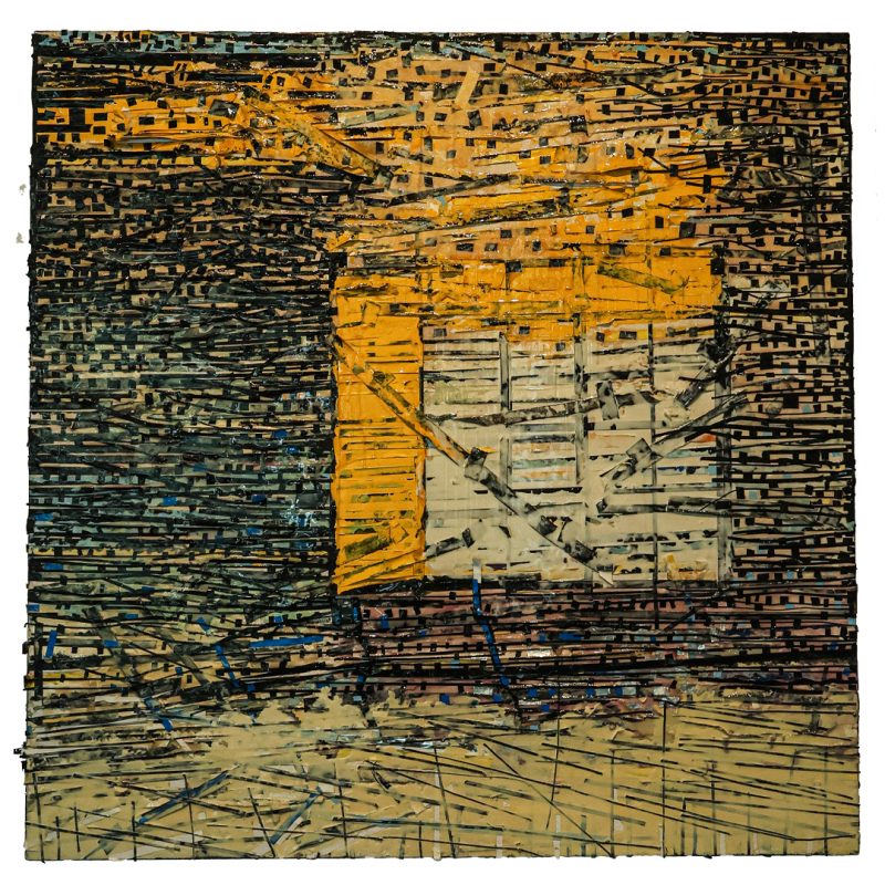 Óleo, materiales varios y resina sobre tela